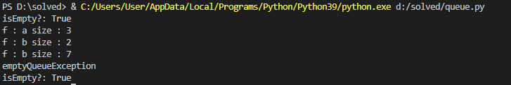- emptyQueueException() : 비어 있는 큐에 대해 삭제 또는 front()를 수행 시도할 때