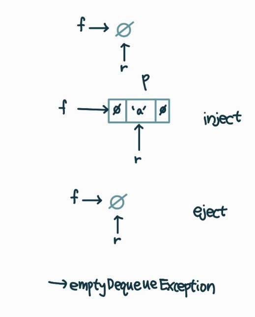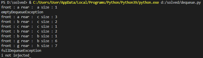 - emptyDequeException() : 비어있는 덱으로부터 삭제를 시도할 경우