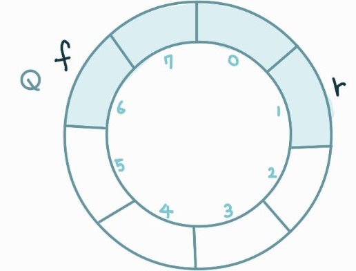 만약 삭제/삽입을 반복해서 f, r의 인덱스가 7을 넘어가더라도 다시 인덱스를 0으로 되돌려 계속 사용할 수 있다.