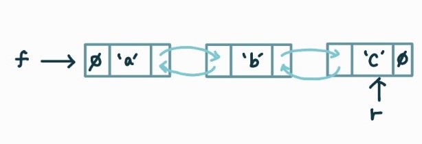 큐와는 다르게 앞/뒤 모두에서 삭제해야 하므로 이중연결리스트를 사용해서 덱을 구현할 수 있다.
