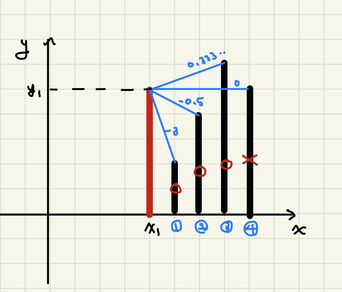 - target의 오른쪽에 위치한 빌딩들의 경우, 이전 건물들보다 기울기가 크면 됨