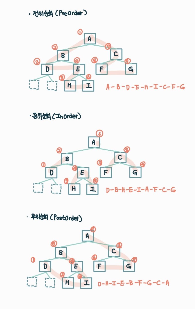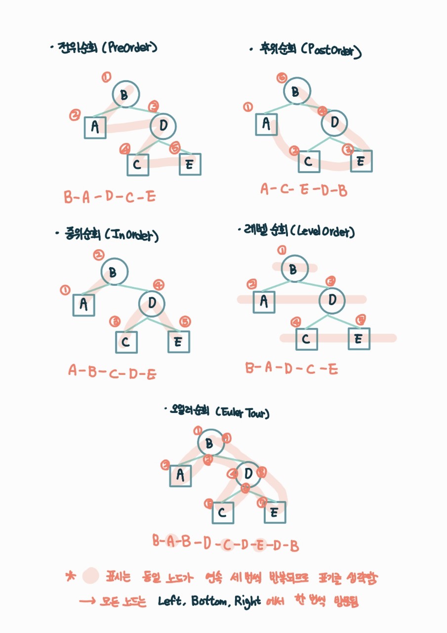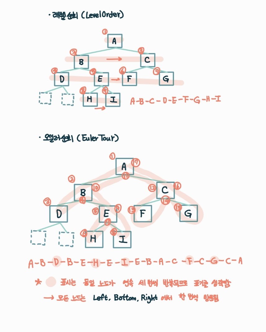 #트리 #이진트리 #이진트리탐색 #전위순회 #중위순회 #후위순회 #오일러순회 #레벨순회