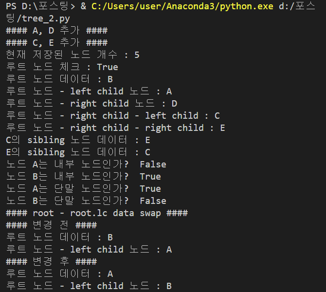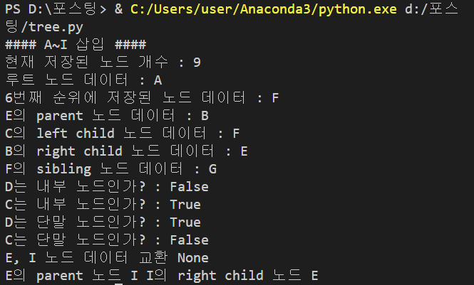 # print("C의 sibling 노드 데이터 :", T.sibling(root.rc.lc).elem)