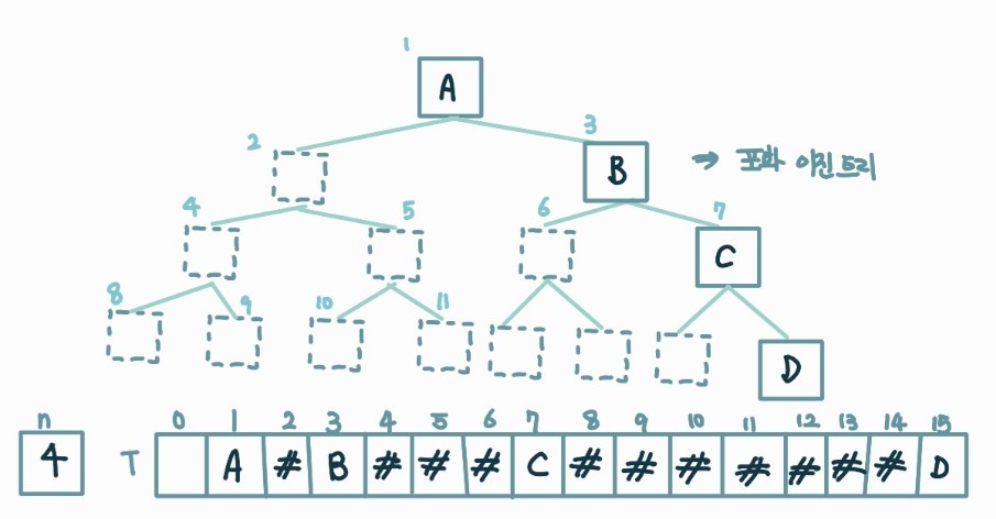 - element setElement(v, e) : 노드 v에 원소 e 저장