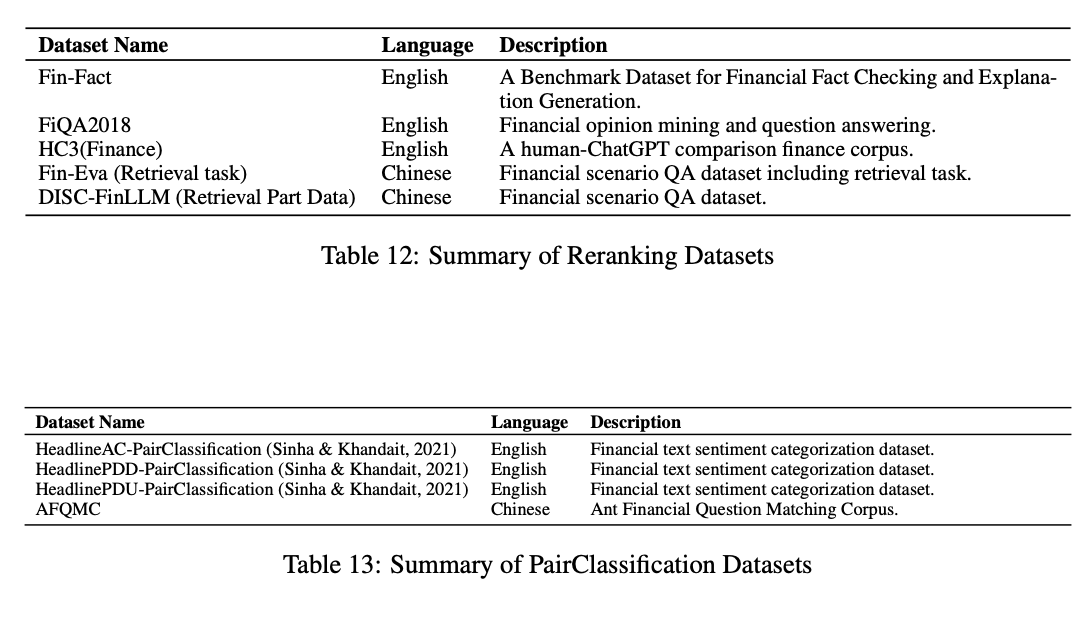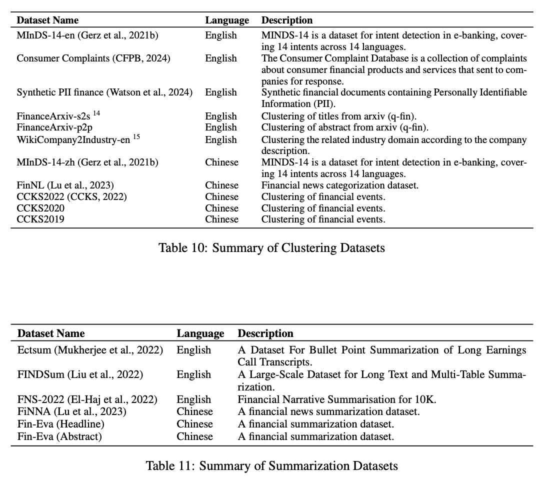 64개의 financial domain-specific text datasets으로 이루어진, Finance Embedding Benchmark