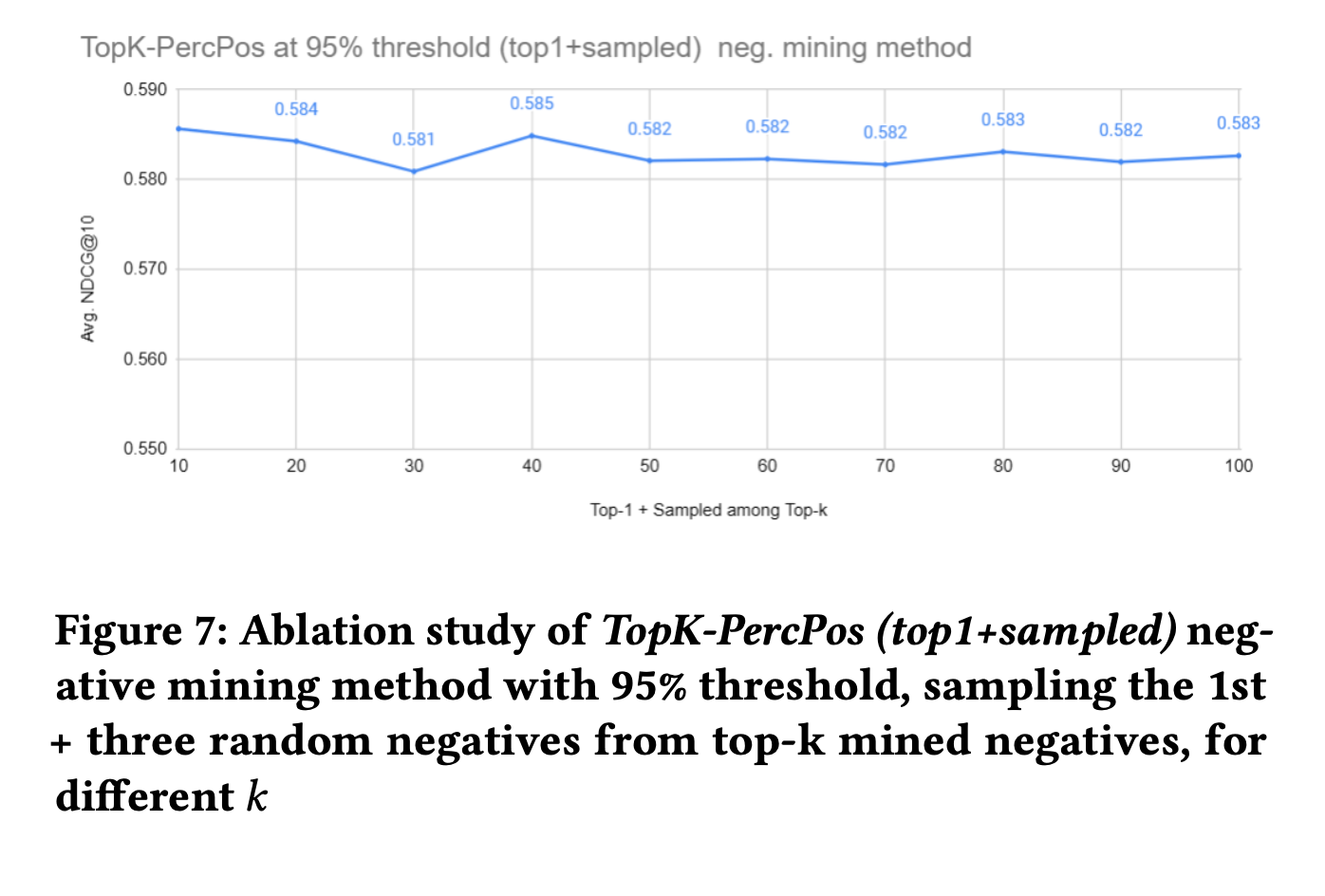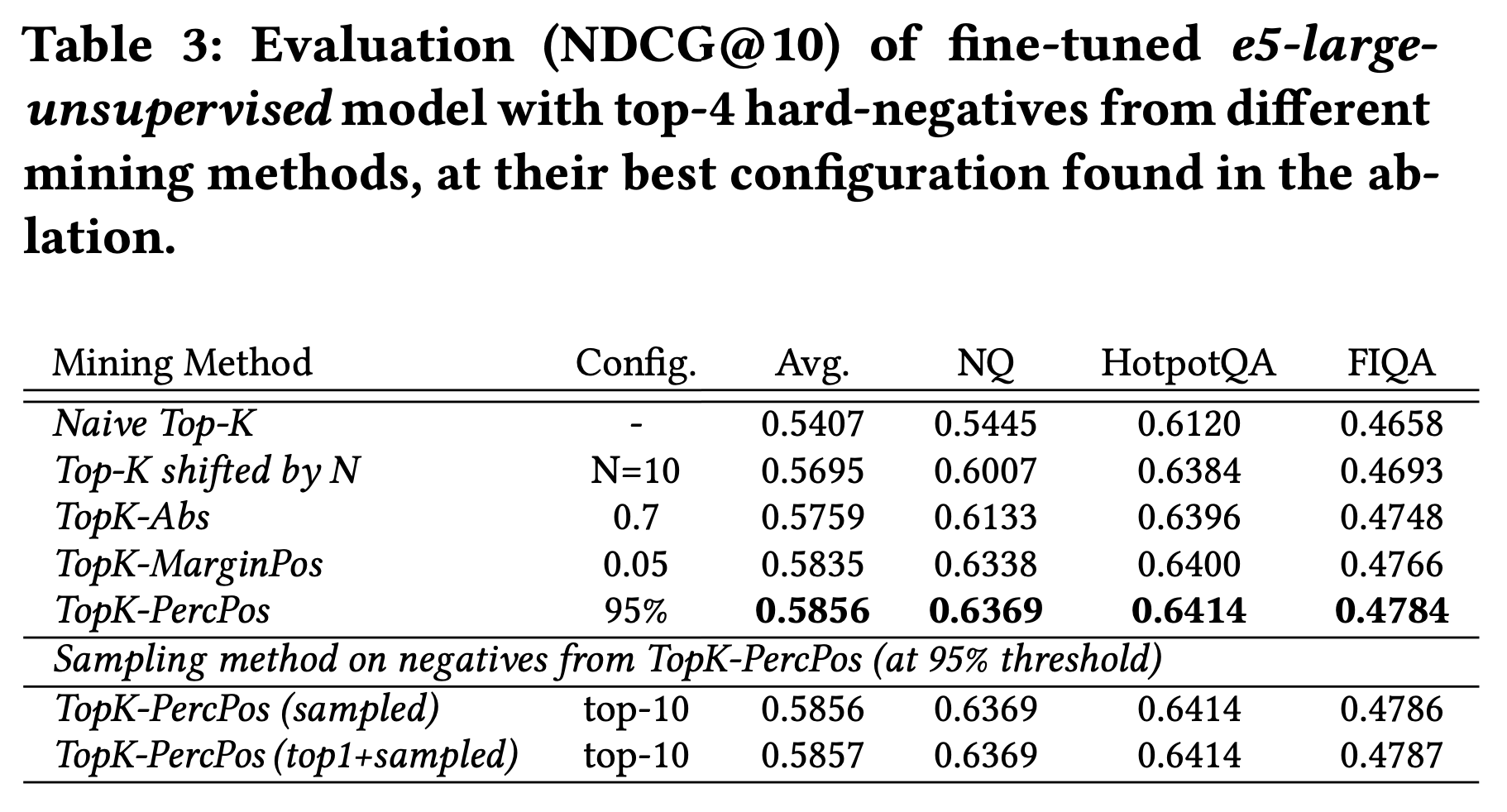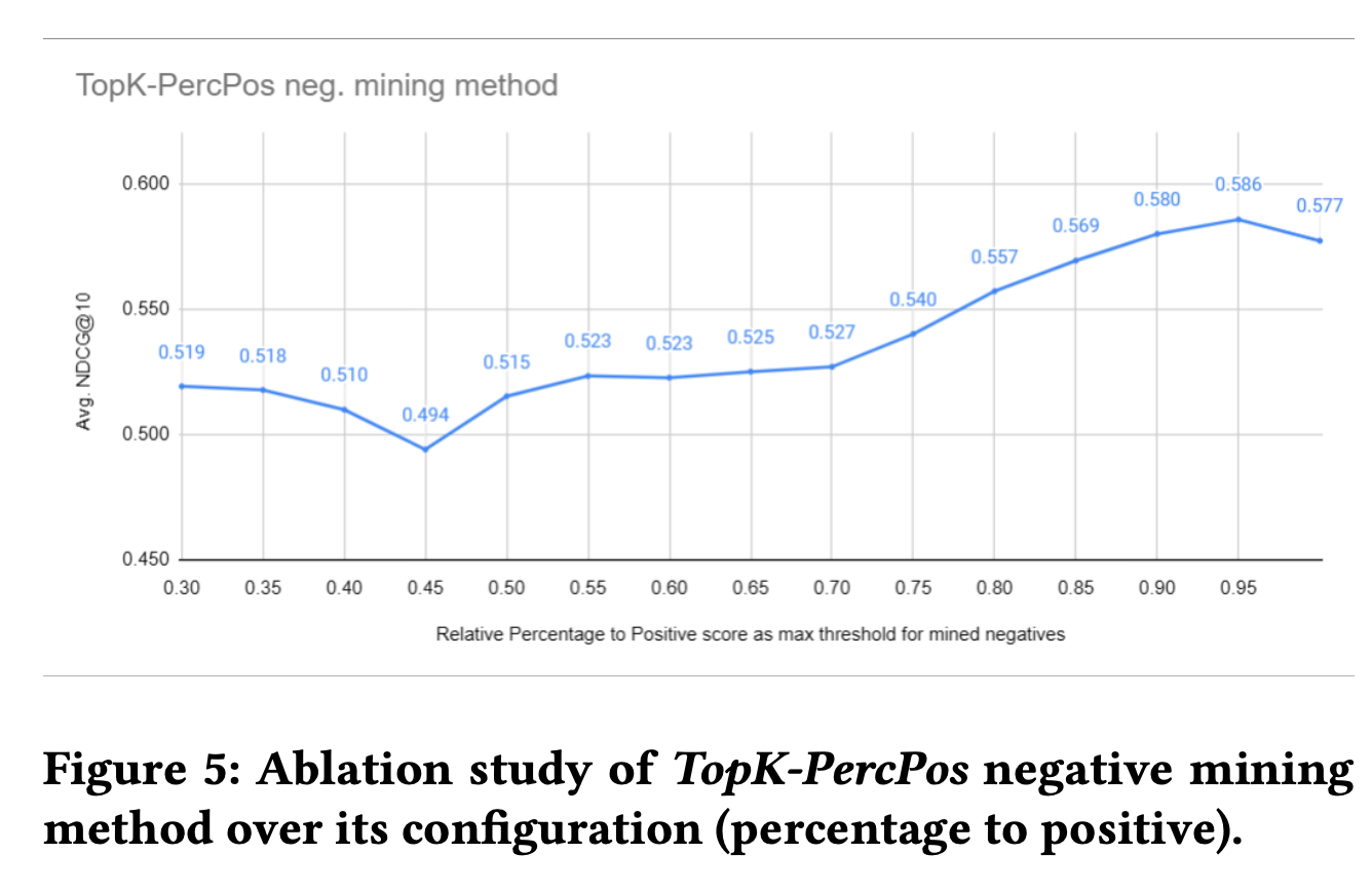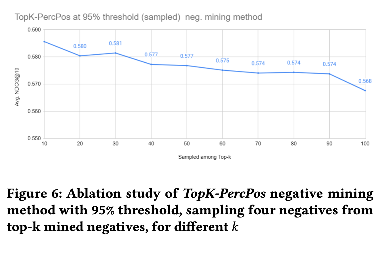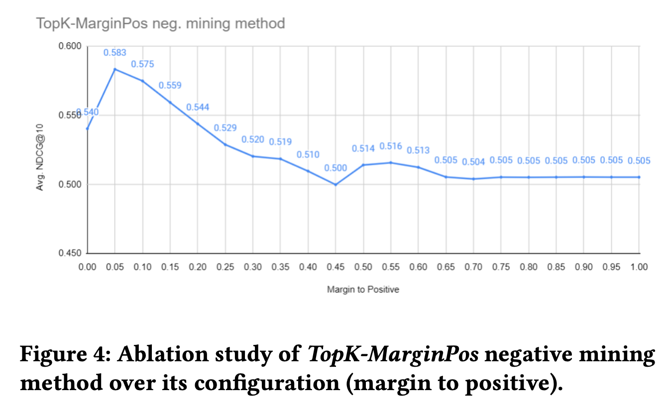 - Positive-aware hard negative mining 방식인 TopK-marginpos, percpos가 성능이 가장 우수했음