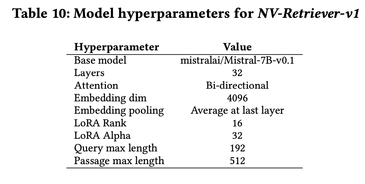 - NV-embed-v1 (7.8B) : A Mistral-based embedding model with some modifications including bi-directional and latent attention