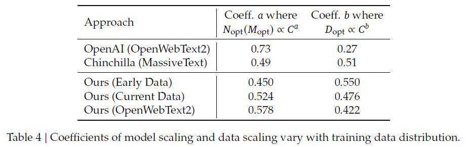 데이터의 품질이 좋다면 동일한 데이터 규모에서도 더 큰 규모의 모델을 학습시킬 수 있어 컴퓨팅 예산을 더 할당할 수 있는데, 실험 결과 값을 토대로 보면 데이터보다 모델에 컴퓨팅 예산을 더 많이 할당해야 한다는 것을 알 수 있다.