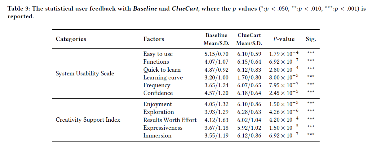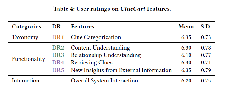 - 이를 기반으로 ClueCart라는 창의적 스토리 해석 지원 도구(Creativity Support Tool, CST)를 설계했으며,