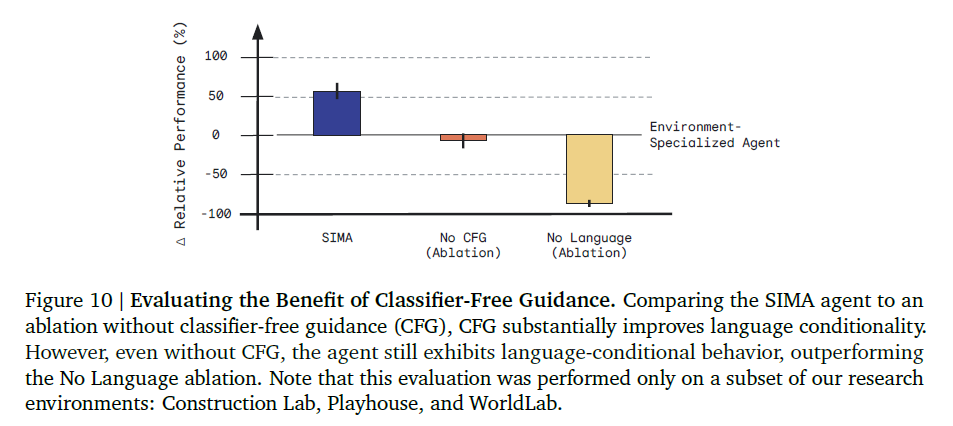 - CFG가 없을 경우 에이전트의 성능이 눈에 띄게 저하됨