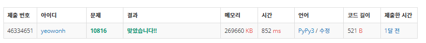 처음에 정렬하는 방법을 생각했는데 그냥 딕셔너리가 더 편한것 같다 (파이썬 한정)