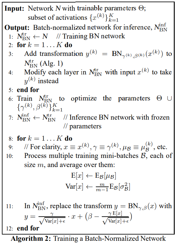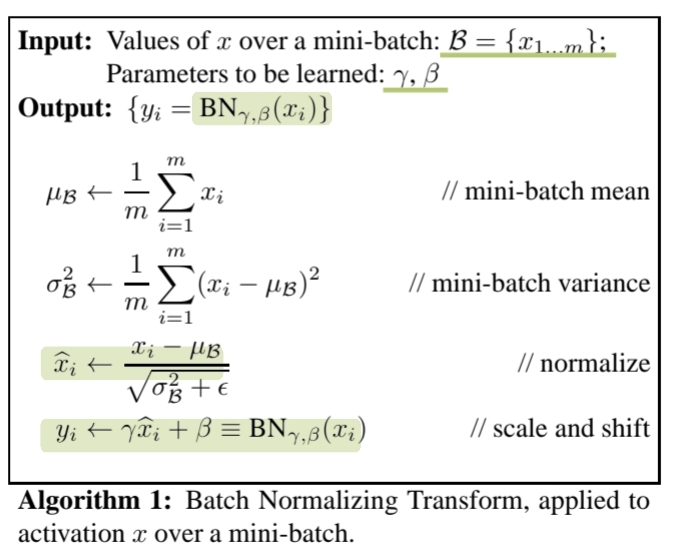 BN transform은 x = Wu의 각 차원에 독립적으로 적용되며, 각 차원 당 학습가능한 파라미터 gamma, beta를 가진다.