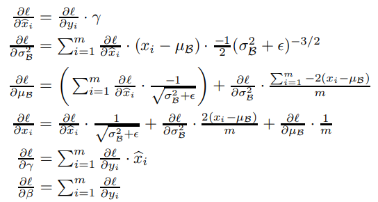 이 때 학습 데이터 x에서 평균 E[x] 를 뺀 \(\hat{x}) 로 결과를 정규화할 때, 만약 gradient descent step이 b에 대한 E(x)의 의존성을 무시한다면 \(b ← b + \Delta) 로 업데이트할 것이고, \(\Delta b)는 \(\sqrt{\partial l}{\partial \hat{x}}) 와 비례할 것이다. 따라서 다음과 같은 수식이 완성된다.