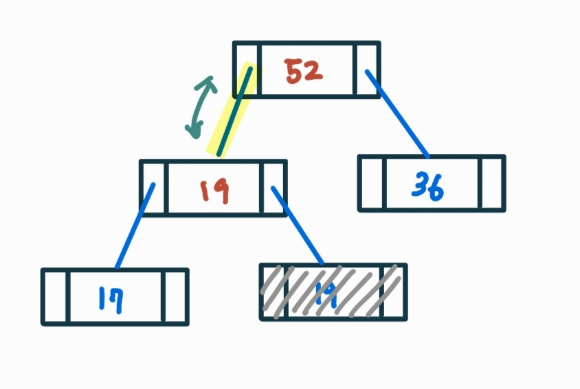 - 마지막 노드인 '19'를 루트 노드로 올리기
