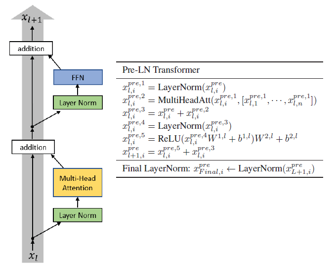 - On Layer Normalization in the Transformer Architecture Pre-LN Transformer