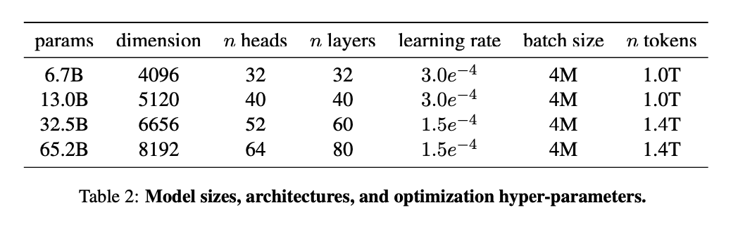 7B - 65B개의 파라미터로 구성된 모델 LLaMA는 수조 개의 토큰으로 모델을 훈련하고, 공개적으로 이용 가능한 데이터셋만 사용해서 SOTA 모델을 훈련할 수 있다는 것을 보여준다.