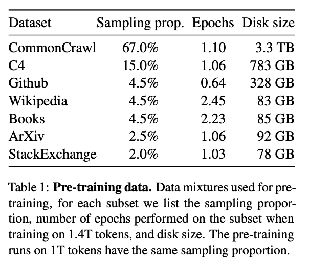 전체 훈련 데이터셋에는 토큰화 이후 약 1.4T의 토큰이 포함된다.