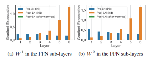 Pre-LN 진행 시 Gradient scale이 다양한 레이어에 대해서 거의 동일하게 유지된다.