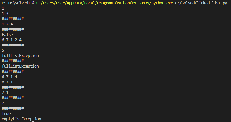 # new_list.addLast(8) # 오류 상황 발생. fullListException