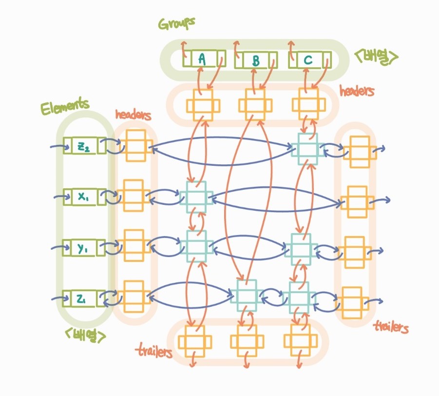 이렇듯 데이터가 다른 그룹에 속해있고, 그걸 구별해줘야하는 상황이라면 위에서 설명했던 구현 방법만으로는 리스트 구현이 힘들 것 같다는 생각이 든다.