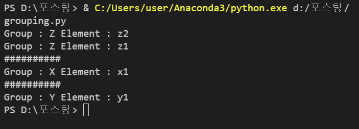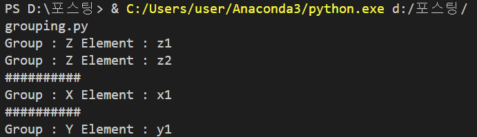 그룹별로 리스트 형태에 저장하기를 바라니까, 하나의 리스트에 임의 개체를 연속적으로 저장할 수는 없을 것 같다.